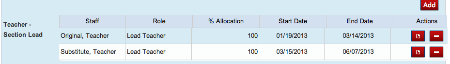 Sometimes a teacher will leave during the middle of a semester. If the teacher is being replaced by another teacher in PowerSchool, the second teacher can be entered as a lead teacher with the appropriate date. This process is also used if a long term substitute is exiting and the original teacher is returning.