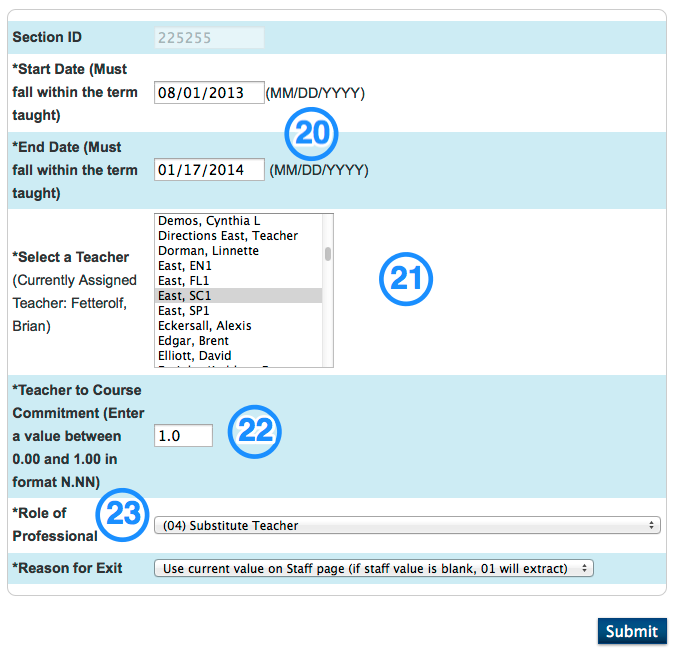 Data personnel at the school will then make the necessary changes to the course section following the instructions below.