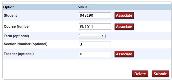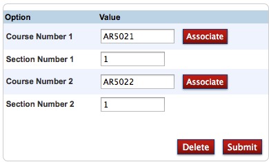 - Type the section numbers in Section Number 1 and Section Number 2. For year long courses, these two numbers should be the exact same.