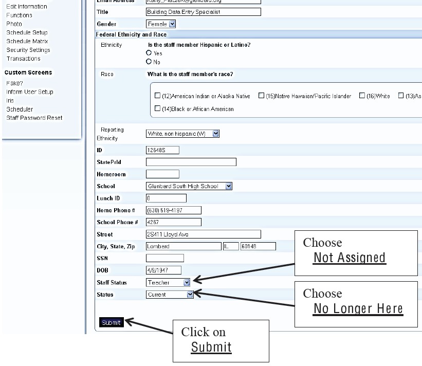 - At the bottom of the of the page change the Staff Status to “Not Assigned”