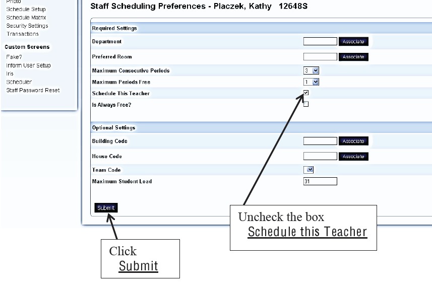 - Uncheck the box called Schedule This Teacher