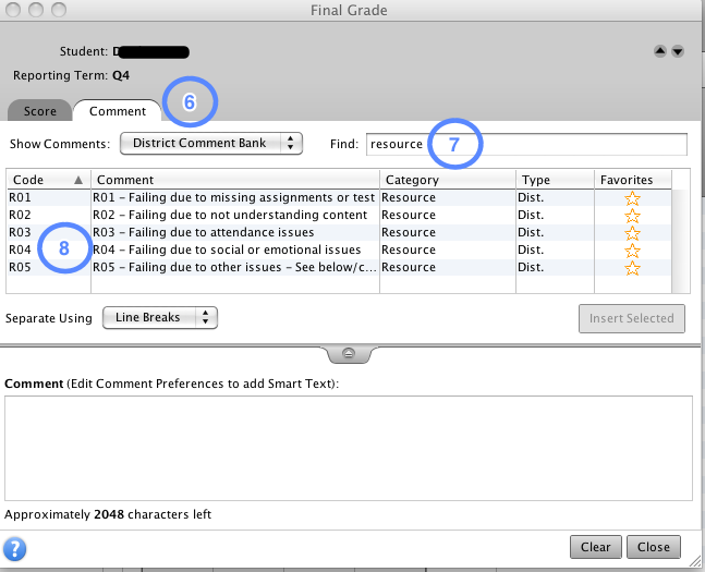 The resource comments allow teachers to inform the student, parents, and administrators about why the student is failing. The resource comment is then displayed in to student and parent as well as used to help administrators to determine how additional resource time will be given.